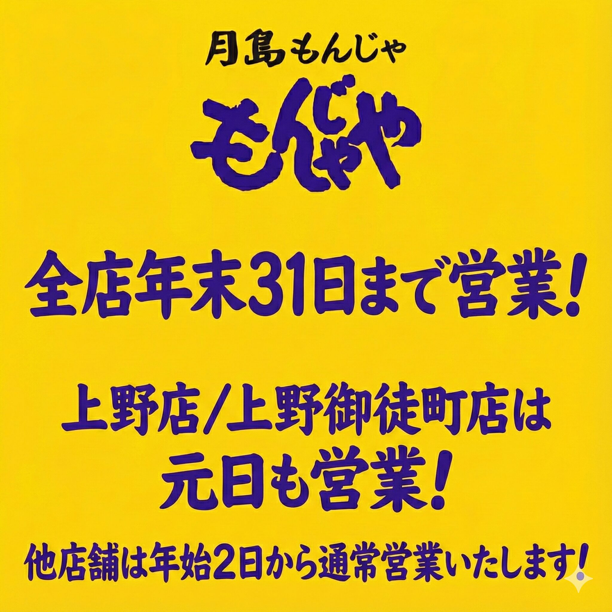 1月1日(元日):上野店・上野御徒町店のみ営業